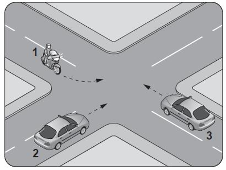 Şekildeki gibi kontrolsüz kavşakta karşılaşan araçların geçiş hakkı sıralaması nasıl olmalıdır?