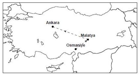 Osmaniye'den hareket eden bir araç, haritada görüldüğü gibi önce Malatya'ya oradan da Ankara'ya gitmiştir.