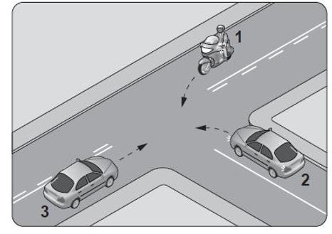 Şekildeki gibi kontrolsüz kavşakta karşılaşan araçların geçiş hakkı sıralaması nasıl olmalıdır?