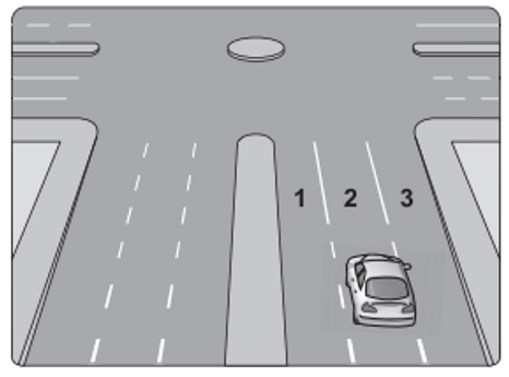 Şekildeki aracın sürücüsü, dönel kavşaktan geriye dönüş yapmak için hangi şeridi izlemelidir?