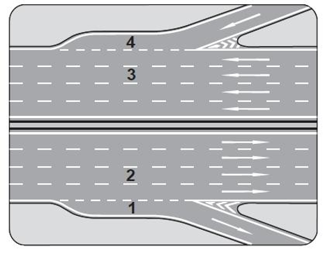 Şekildeki otoyolda numaralanmış şeritlerden hangisi katılma (hızlanma) şerididir?