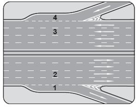 Şekildeki otoyolda numaralanmış şeritlerden hangisi ayrılma (yavaşlama) şerididir?
