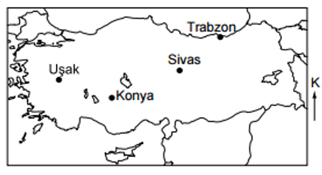 Haritada yeri gösterilen illerden hangisi daha güneydedir?