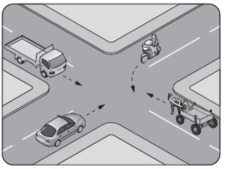 Şekildeki kontrolsüz kavşakta ilk geçiş hakkını hangi araç kullanmalıdır?