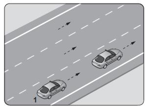 Şekildeki 1 numaralı araç sürücüsünün, önündeki aracı geçmesi sırasında aşağıdakilerden hangisini yapması yasaktır?
