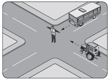 Şekildeki trafik görevlisinin işaretine göre aşağıdakilerden hangisi doğrudur?