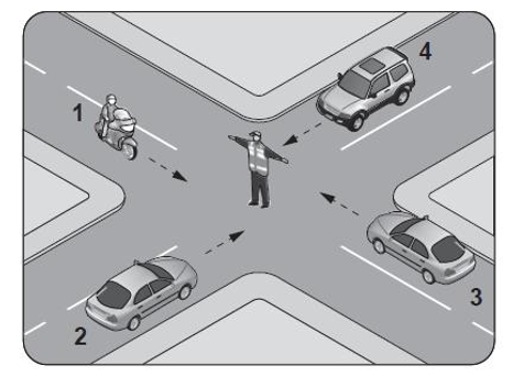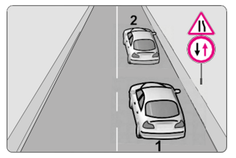 Şekildeki trafik işaretlerine göre 1 numaralı araç sürücü nasıl davranmalıdır?