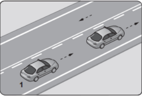 Şekildeki kara yolunda 1 numaralı araç sürücüsünün Aşağıdakilerden hangisini yapması yanlıştır?