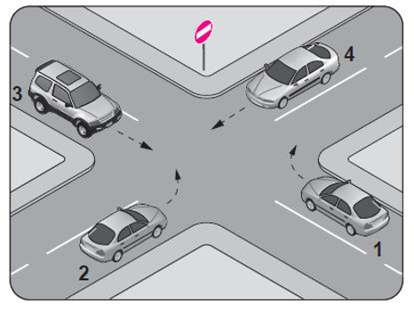 Şekildeki kara yolu bölümünde hangi numaralı taşıtın ok yönündeki hareketi yasaktır?