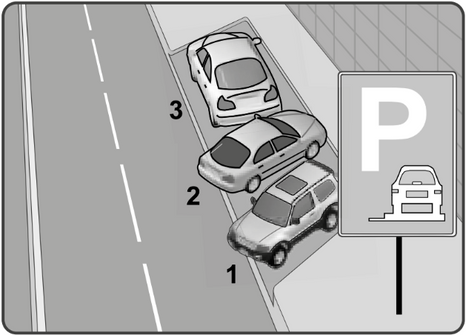 Şekildeki “park etme bilgi işaretine” göre hangi numaralı araçlar yanlış park etmiştir?