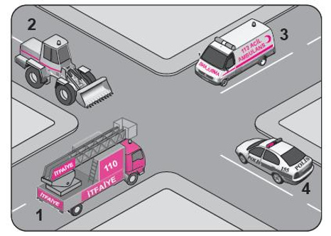 Şekildeki araçların görev hâli durumunda geçiş üstünlüğü sıralaması nasıl olmalıdır?
