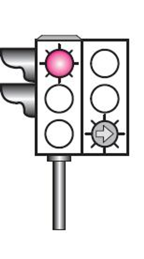 Aksine bir durum yoksa, şekildeki gibi ışıklı trafik işaret cihazında kırmızı ışık ve yeşil oklu ışığın birlikte yandığını gören sürücü, aşağıdakilerden hangisini yapabilir?