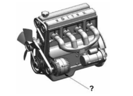 Şekilde soru işareti (?) ile gösterilen ve araç için gerekli elektriği üreten parçaya ne ad verilir?