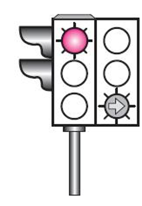 Şekildeki ışıklı trafik işaret cihazında, kırmızı ışık ve yeşil oklu ışık birlikte yanmaktadır.