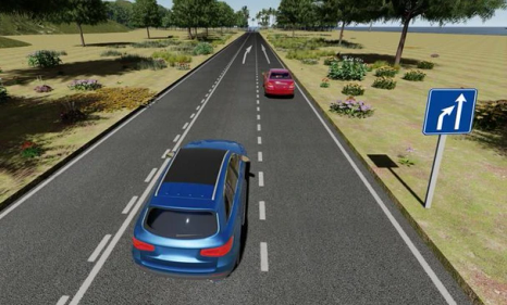 Görseldeki mavi renkli aracın sürücüsü nasıl davranmalıdır?