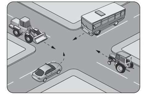 Şekilde görülen kontrolsüz kavşakta ilk geçiş hakkını hangi araç kullanmalıdır?