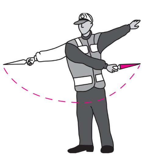 Trafik görevlisinin hangi hareketi geceleyin "geç" işaretidir?